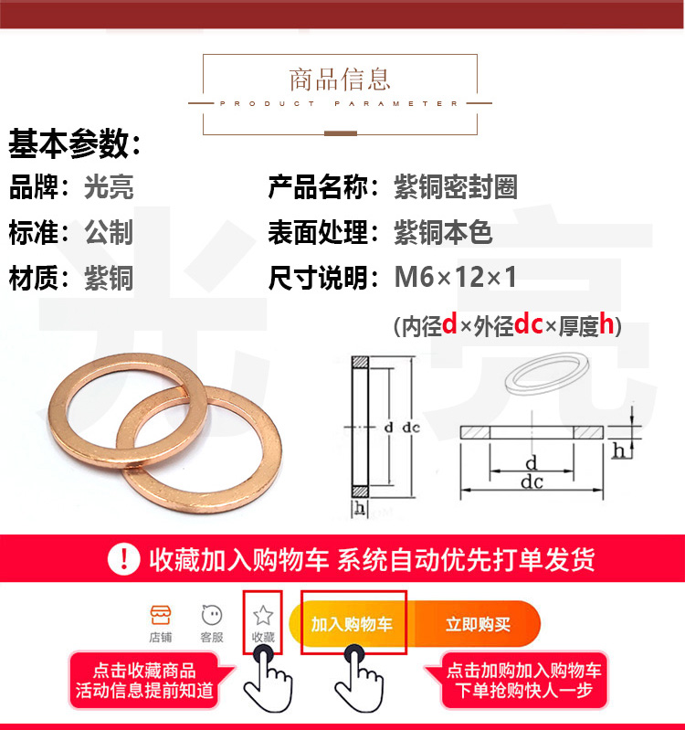 Copper sealing ring Marine copper gasket sealing gasket M5M6M8M10M12M14M16M18M20M22M24
