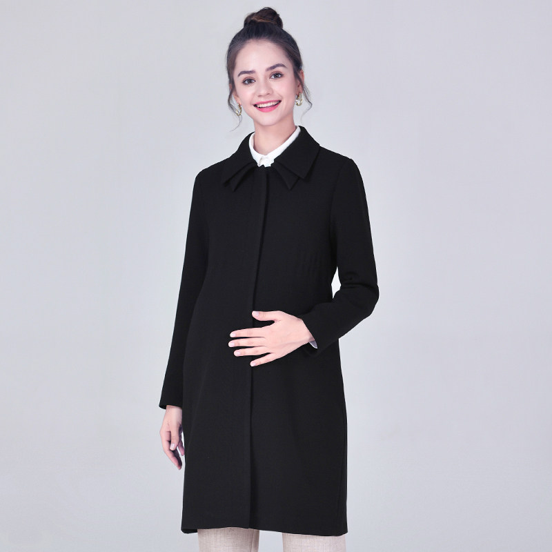 Pregnancy Woman Dress Spring Fall Pregnant Woman Coats Woman Medium Long Version Thickened Black Windjersey Career Interview For Work Overalls