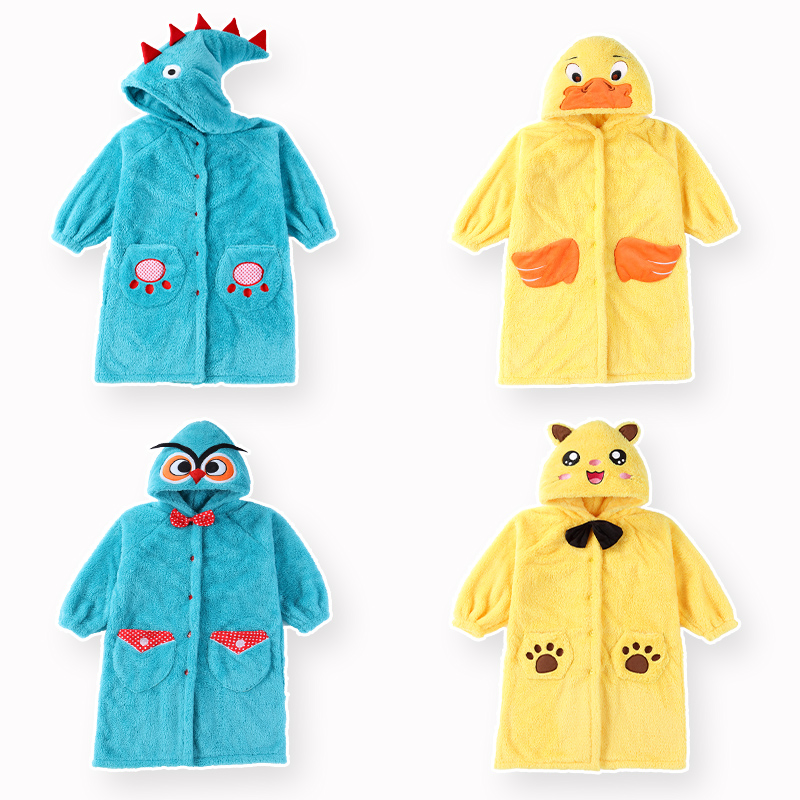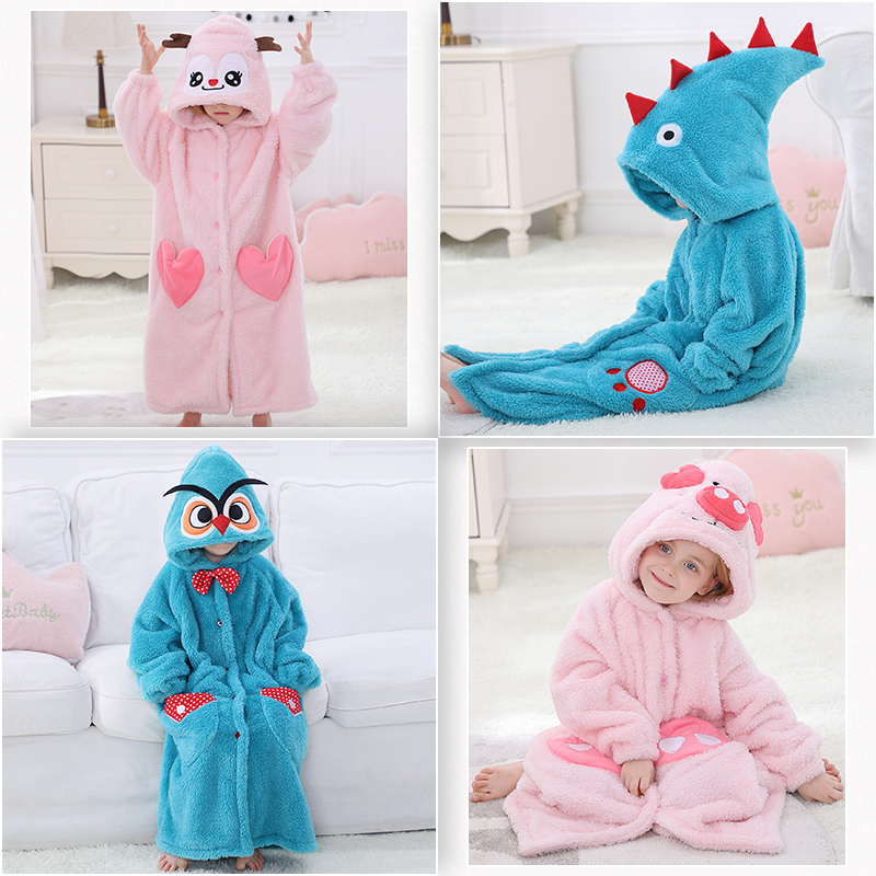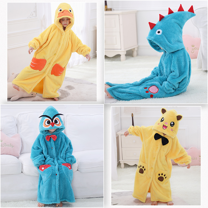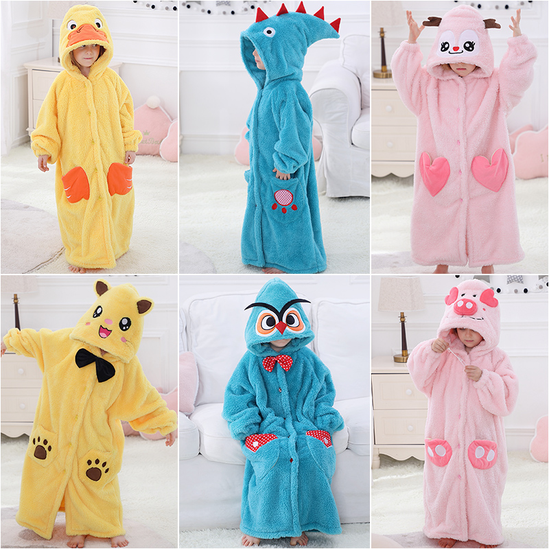 Bathrobe Children's nightgown Men's and women's winter thickened long version flannel pajamas Baby yukata Coral velvet home clothes
