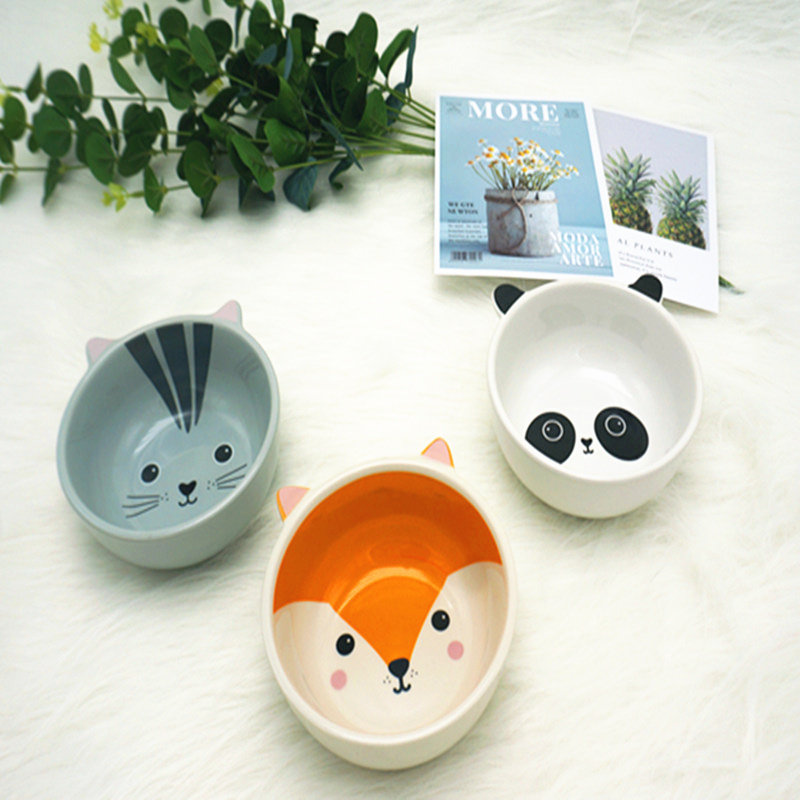Ceramic cat bowl net red binaural cartoon pet bowl bamboo wood frame drinking bowl cat food bowl anti-overturning cat bowl dog bowl