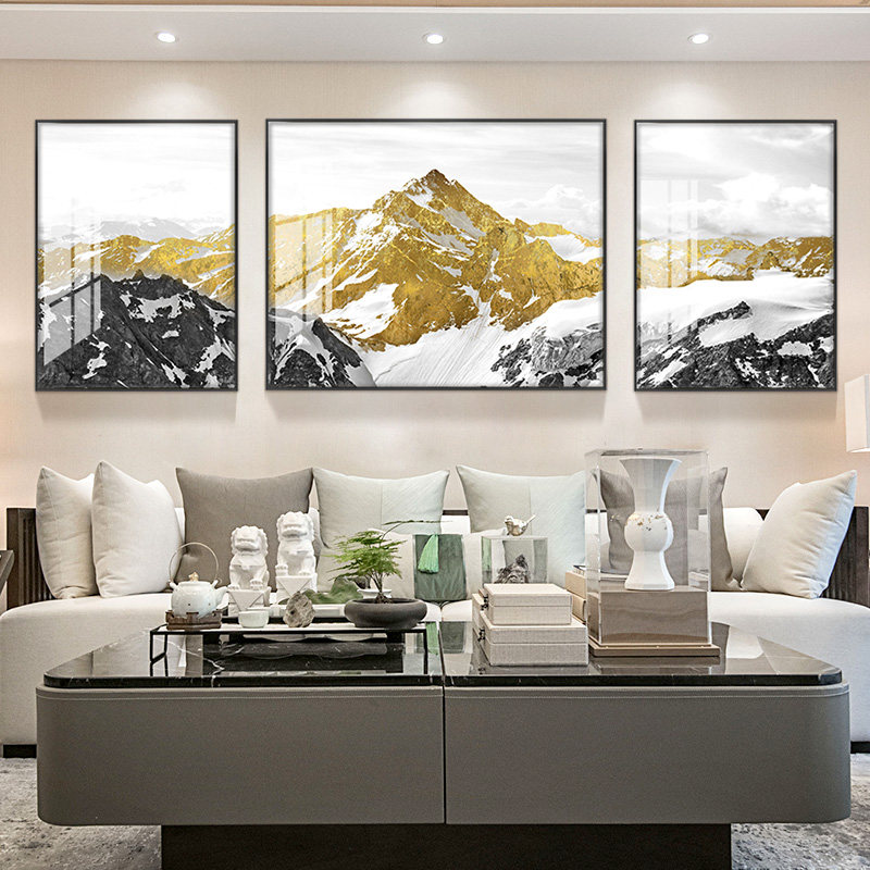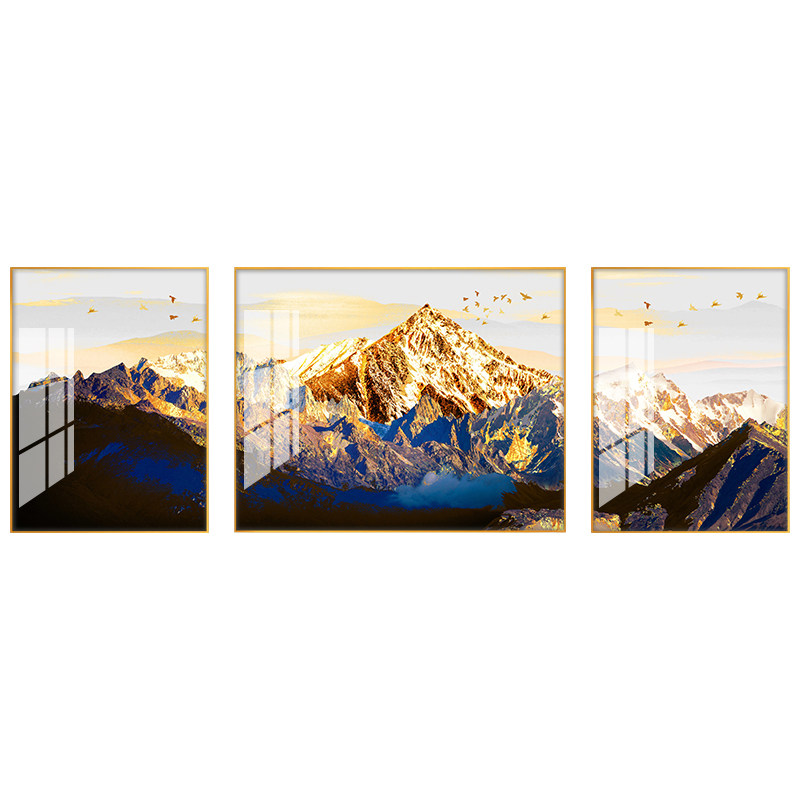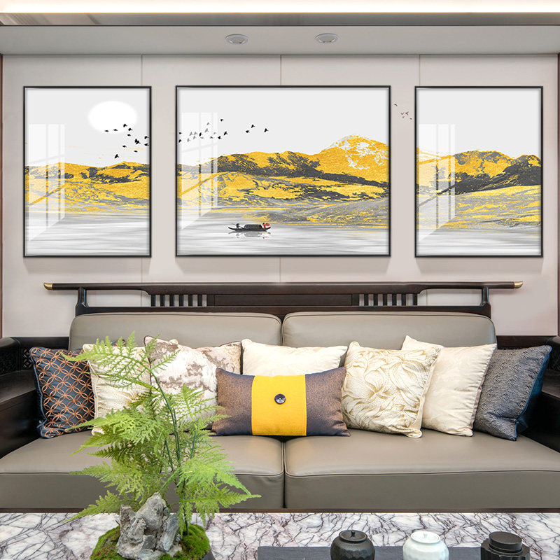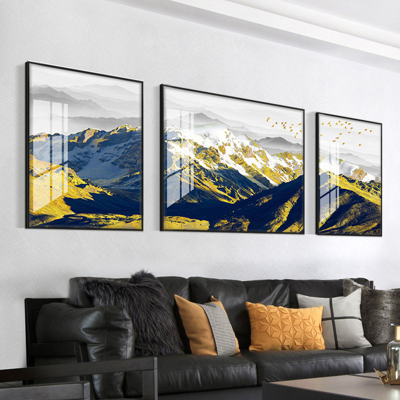 Back to Jinshan living room sofa background wall decorative painting Nordic triple hanging painting diamond crystal porcelain painting gilt water mural