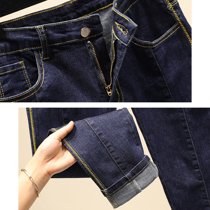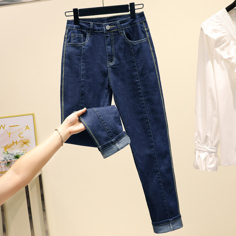 Tide brand big size high waist stretch jeans women 2021 new fashion Korean trousers slim body slim pipe pants