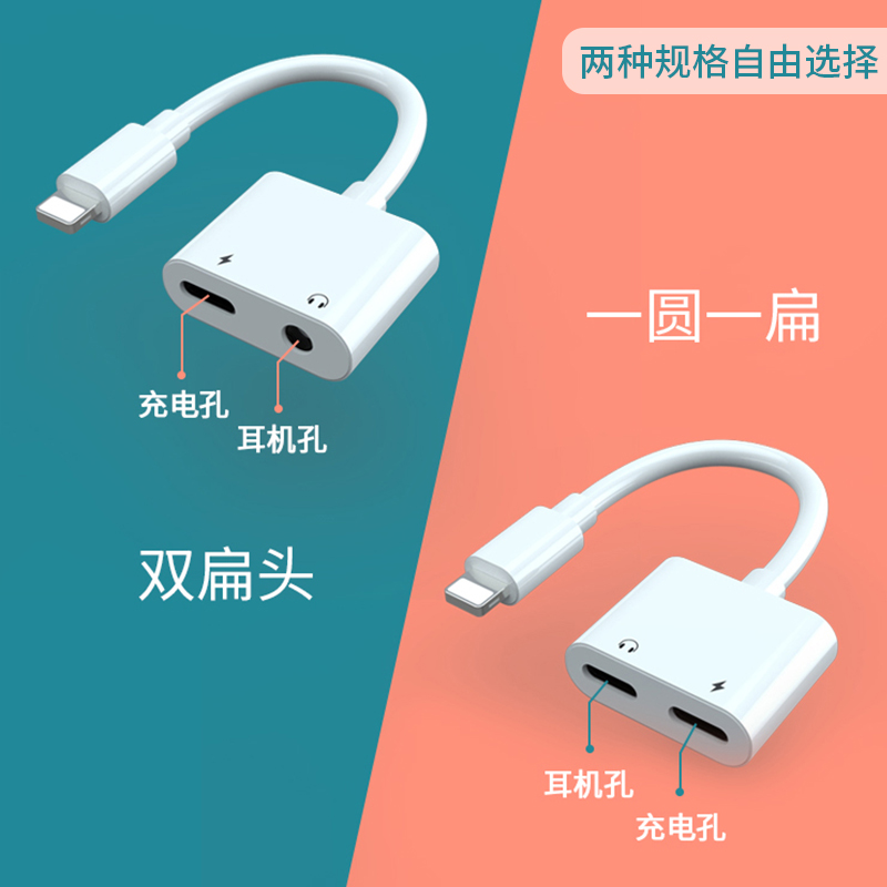 Suitable for Apple headphone adapter two-in-one converter lighting to 3 5mm audio converter flat head to round head iphone7 8 11 game listening to songs sound card
