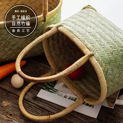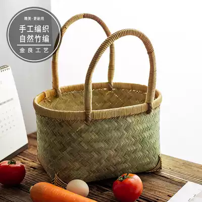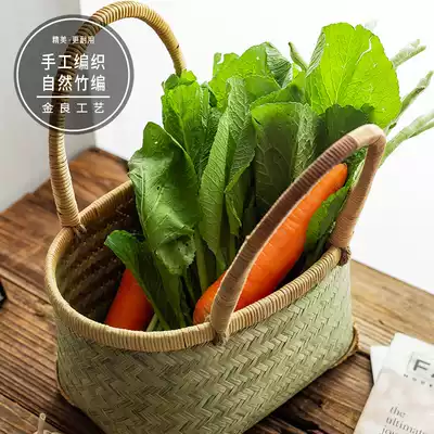 Household handmade rattan vegetable basket Spring outing picnic basket portable bamboo basket Bamboo vegetable basket egg basket