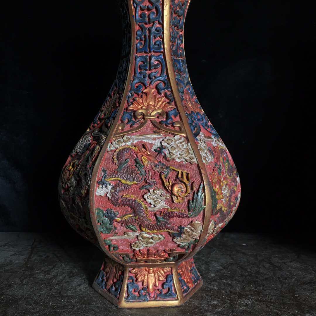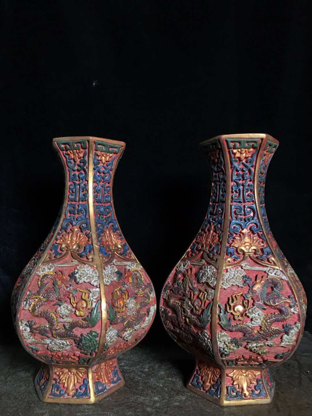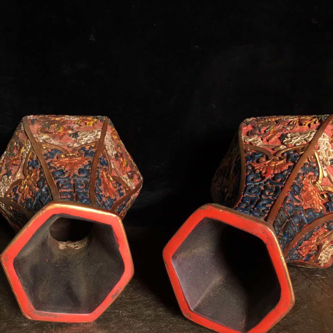 Folk Collection Old Painted hand engraving lacquerware vase A pair of high 26 cm