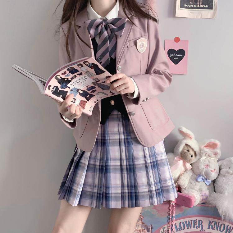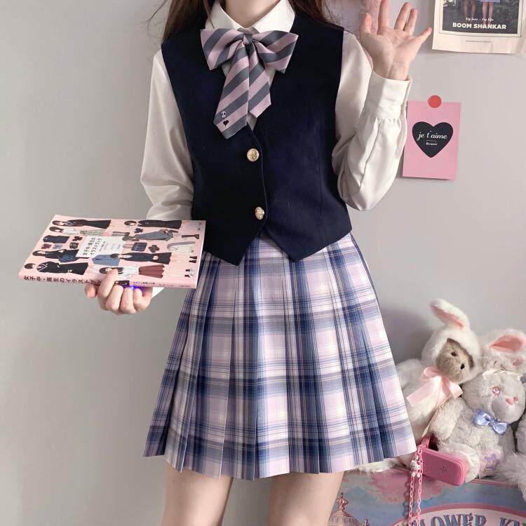 Kasugabe (laser blueberry) spot original pink purple plaid skirt jk uniform orthodox girl skirt