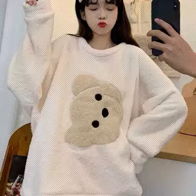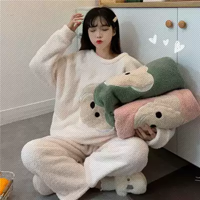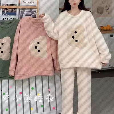 Set home clothes schoolgirls winter 2020 plus velvet padded cute round neck top pajama pants two-piece pajamas