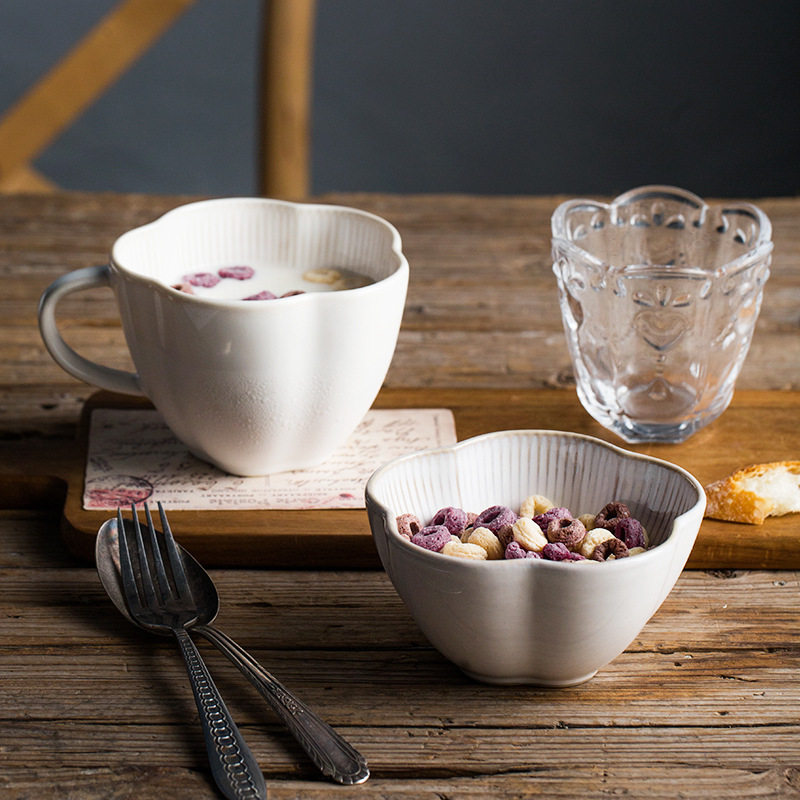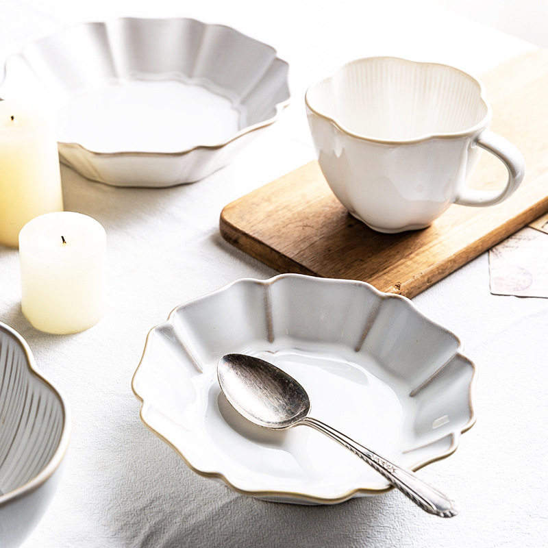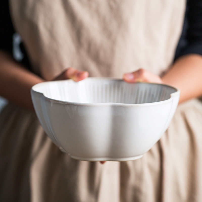 Japanese retro petal relief tableware creative household ceramic rice bowl Nordic soup noodle bowl fruit salad bowl kiln change