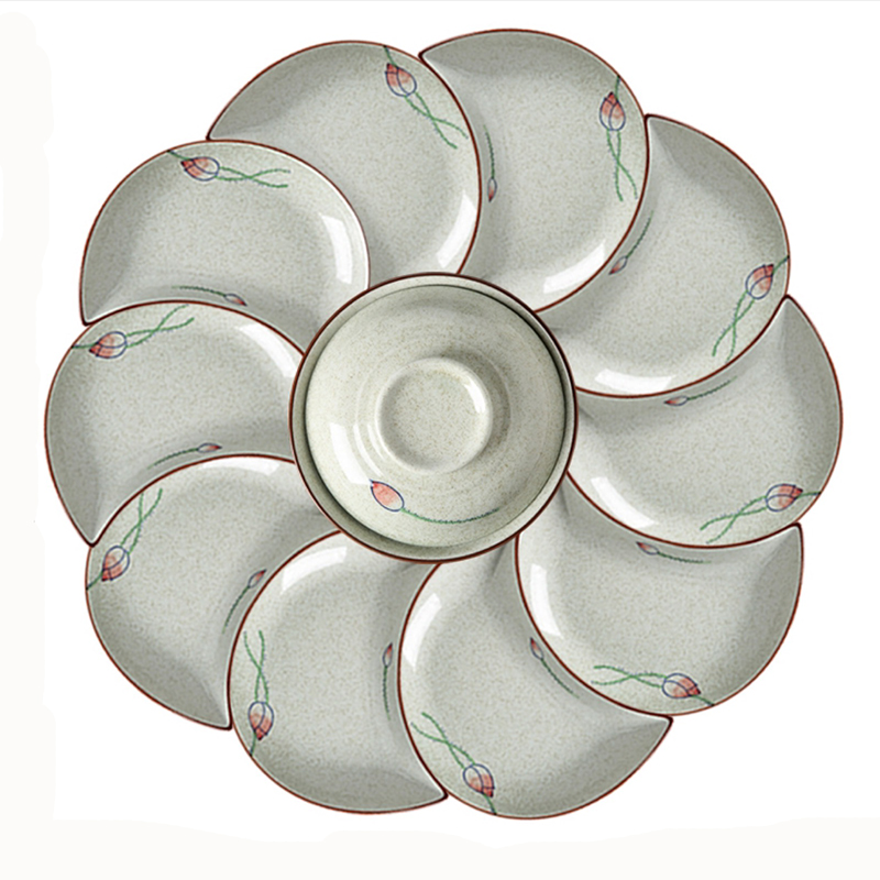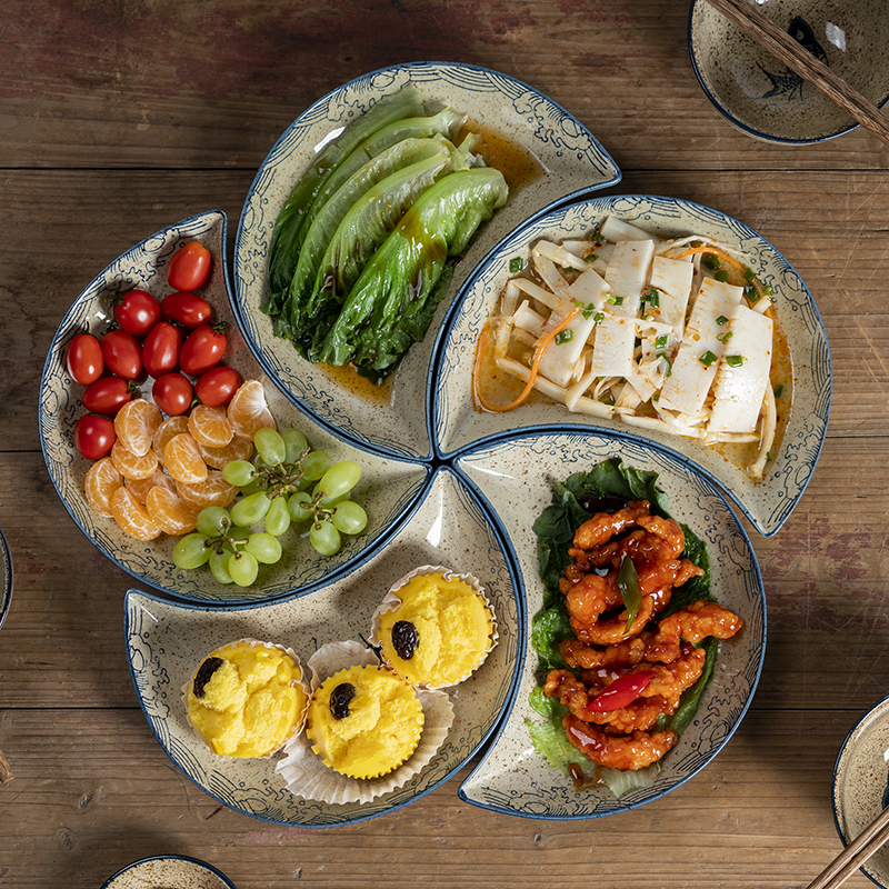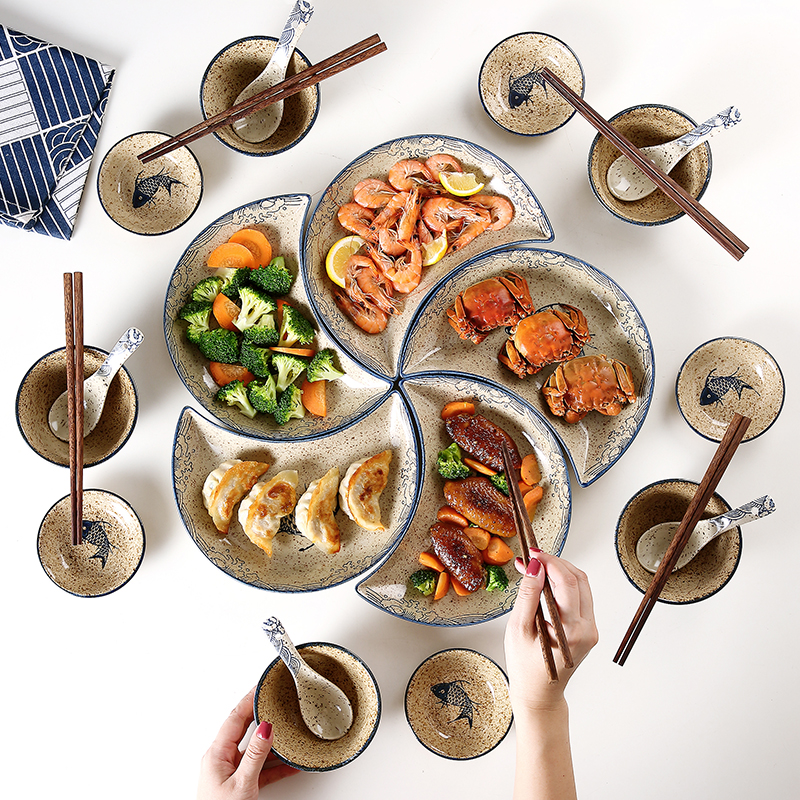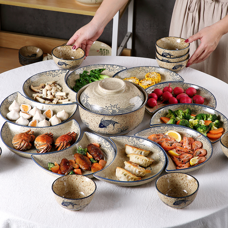 Glazed color ceramic parquet for Lunar New Year reunion Domestic cutlery Family cutlery Vegetable Fish Seafood Snack Moon Plate Soup Bowl