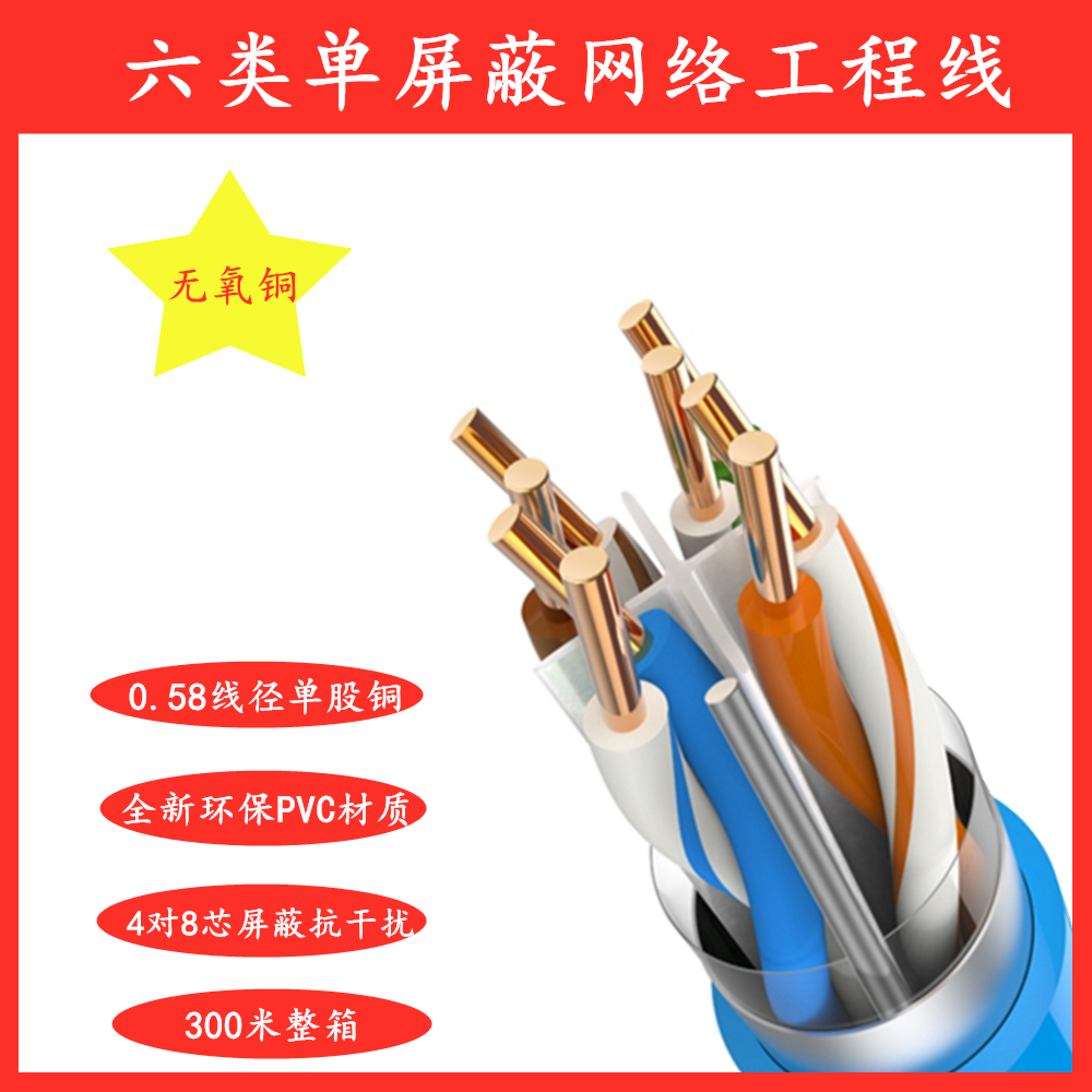 AMP high-speed ultra-five and six-category network cable overtest oxygen-free copper POE monitoring single-shielded gigabit household 300-meter box