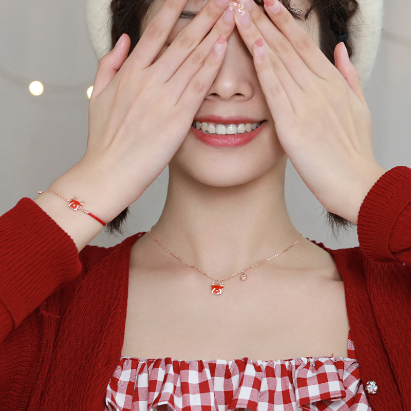 Cute Deer Handmade Woman Pure Silver All The Way you catch a warm discoloration and small crowdsourced design senses national wind red rope light extravagant and refined lettering
