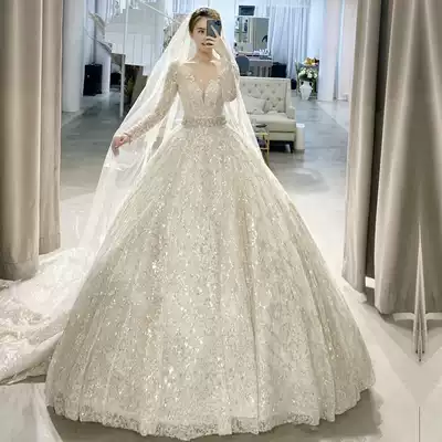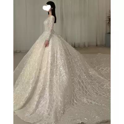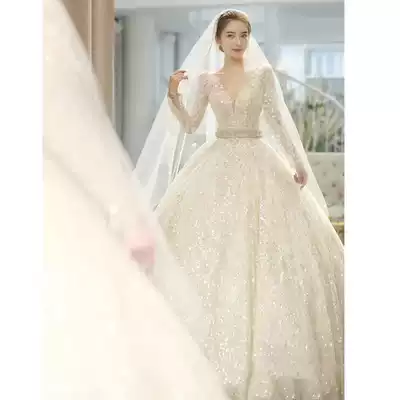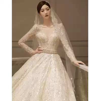 Starry sky main wedding dress long-sleeved 2021 new bridal temperament forest super fairy dream French high-end big tail luxury