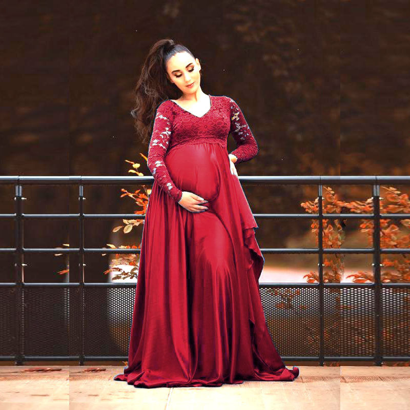 Outlets Pregnant Women in Europe and America Photography Ocean Sexy Lace V-collar Left Dress Photography Costume