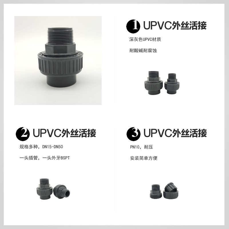 PVC external thread movable joint UPVC external thread movable joint Plastic water supply pipe external tooth movable joint Chemical grade by Ling head