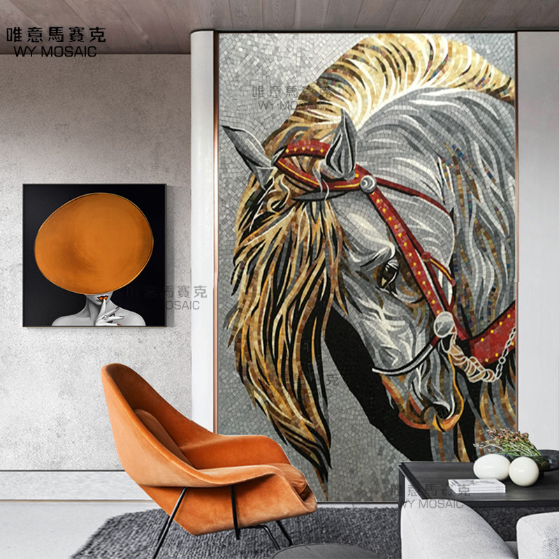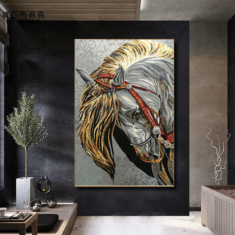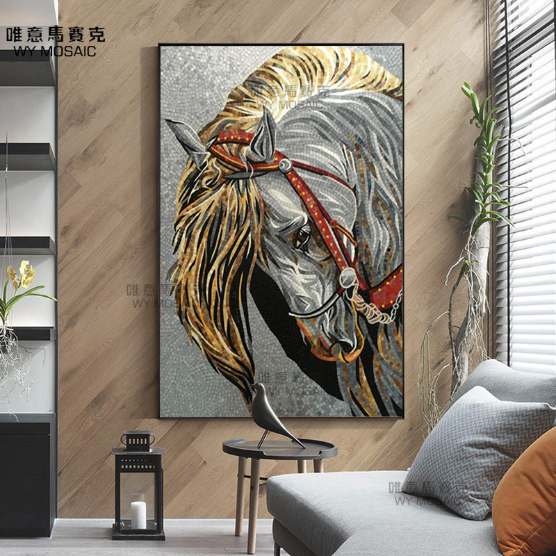 Horse head mosaic background wall simple modern living room porch aisle background jigsaw puzzle cut mosaic tiles