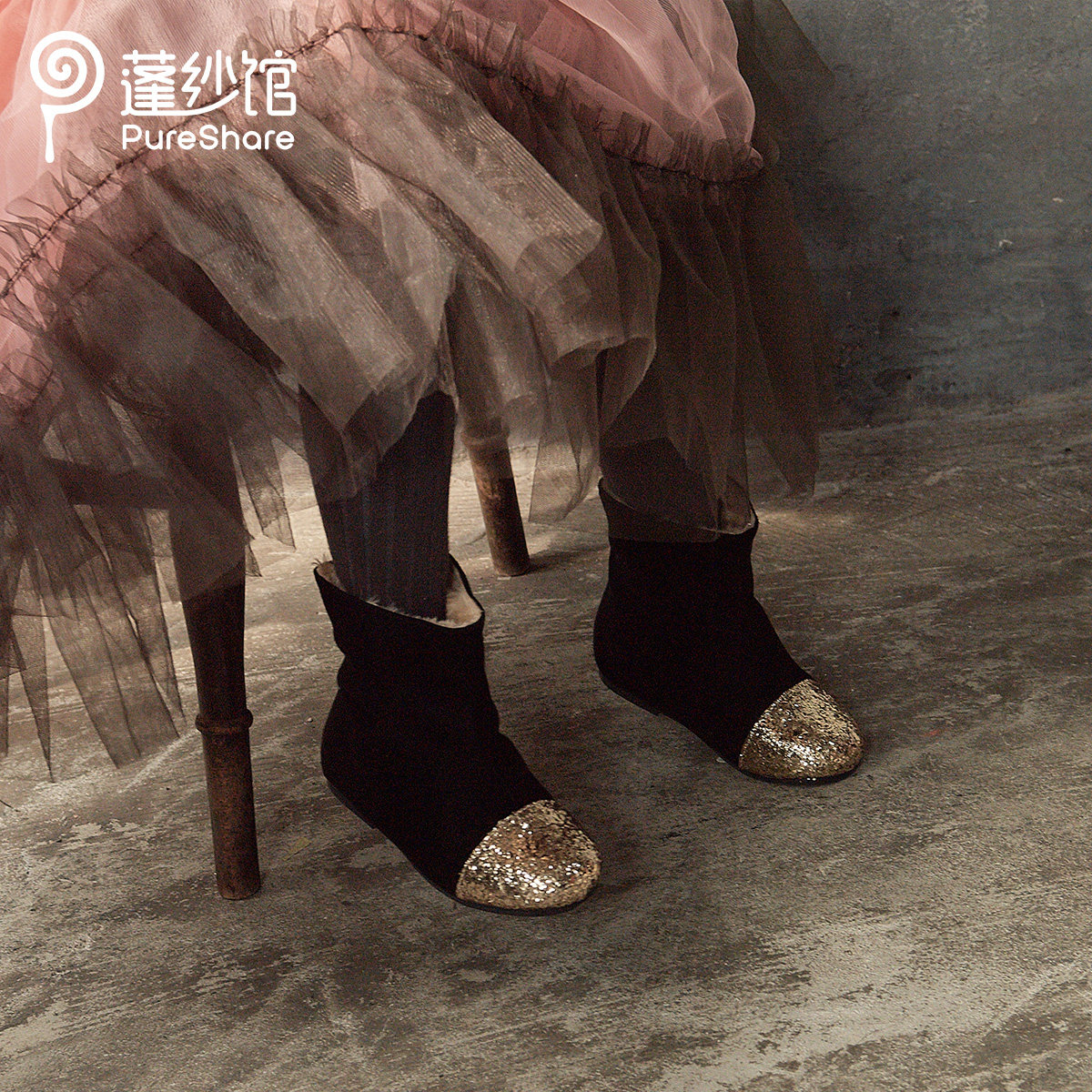 pureshare girls' children's boots 2021 new autumn and winter sequin black warm plus fleece boots cute