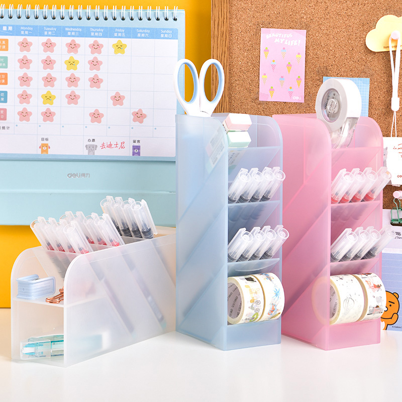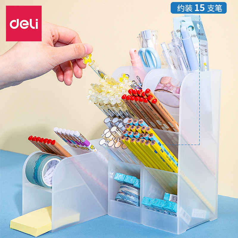 Deli 8932 oblique plug-in printing style simple pen holder personalized storage pen holder Student desktop creative fashion multi-function four-grid storage pen box Office pen holder Multi-color selection children's pen barrel