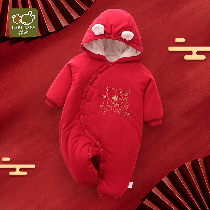 Bear hug baby bag hat full open jumpsuit - red bear hug baby bag hat full open jumpsuit - beige Tang suit full open jumpsuit Tang suit side open jumpsuit Tang suit hooded jumpsuit