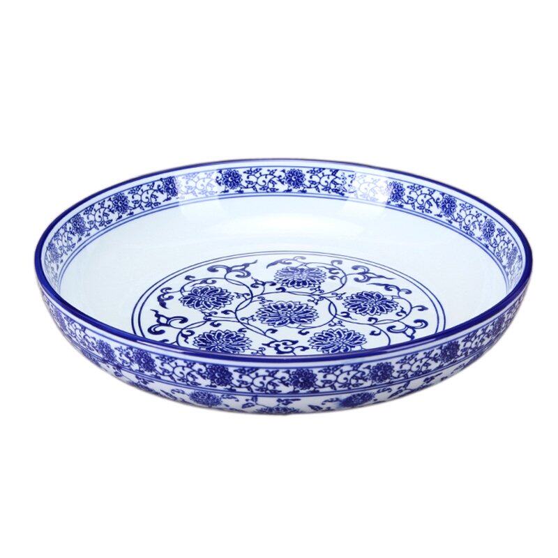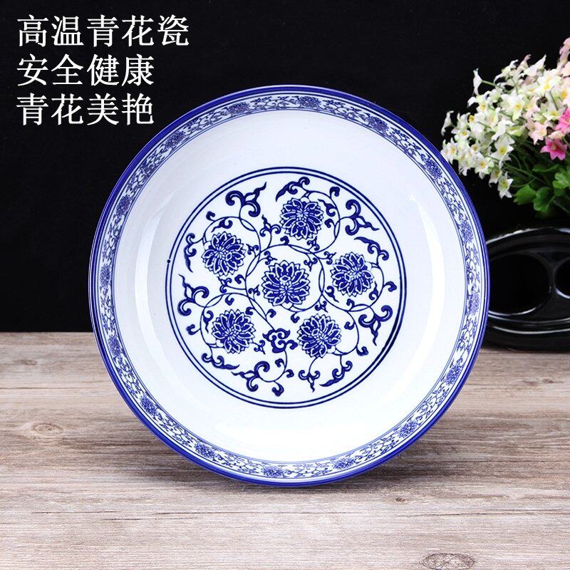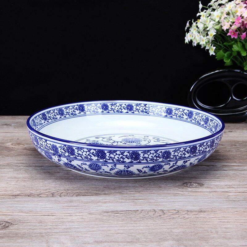 Green flower porcelain ceramic flat pan water dumplings dish Western dining tray Water fruit tray cool vegetable dish hot vegetable dish Schallapan beef steak dishes