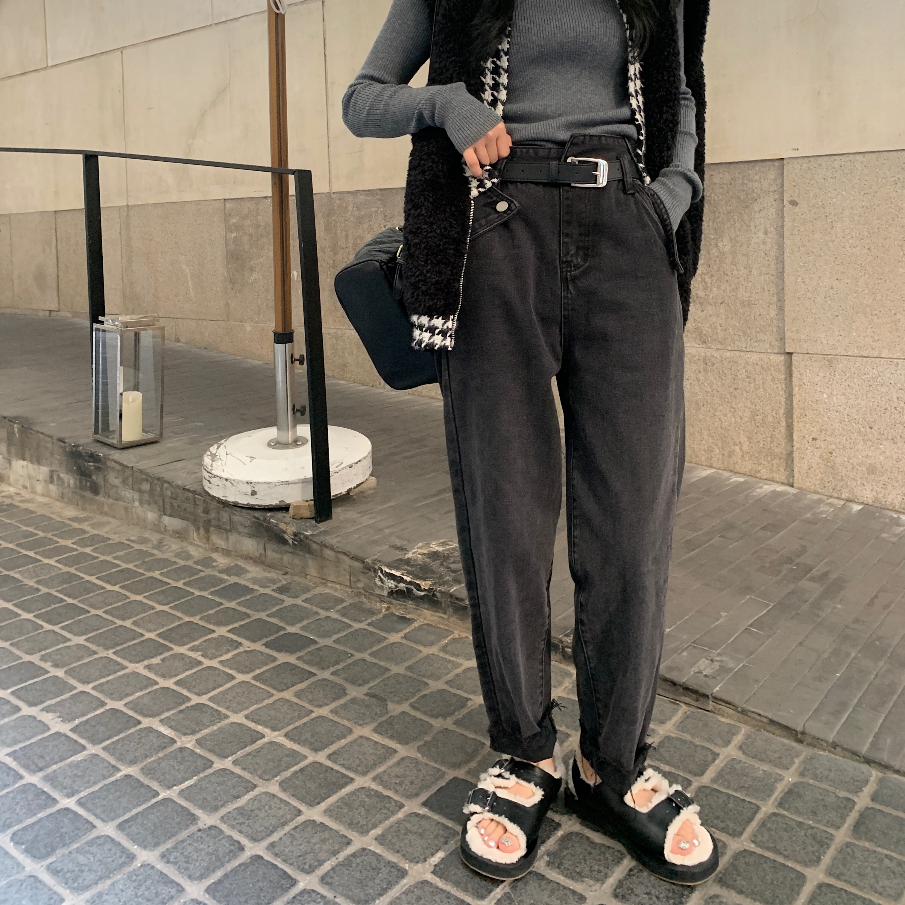 High waist thin jeans women's 2022 autumn and winter new loose carrot pants Korean style temperament dark small feet pants