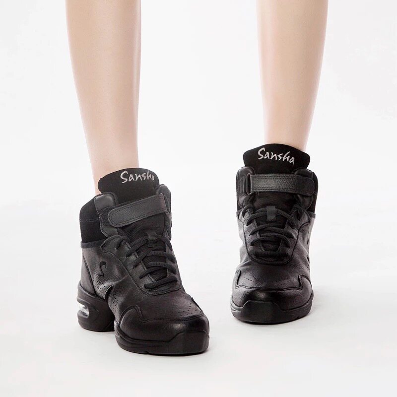 Sansha dance shoes women's soft sole exercise shoes leather sports fitness dance shoes heel square dance shoes autumn and winter