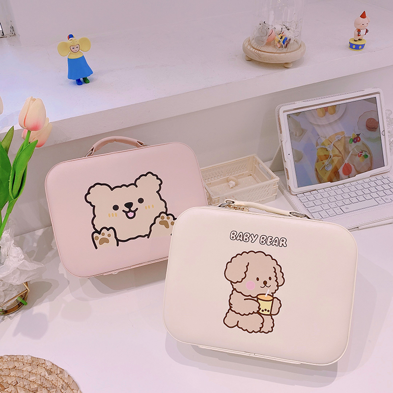 ins Weathering Makeup Bag Woman Portable New Travel Big Capacity Cute Day Ensemble Korea Little Bear Suitcases Makeup Boxes