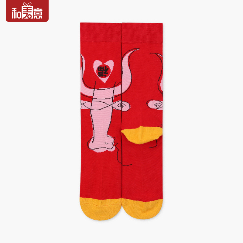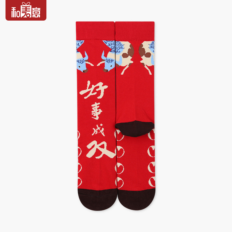 Year of life Year of the Ox Red socks New Year gift Wedding couple men and women step on the villain winter short tube big red