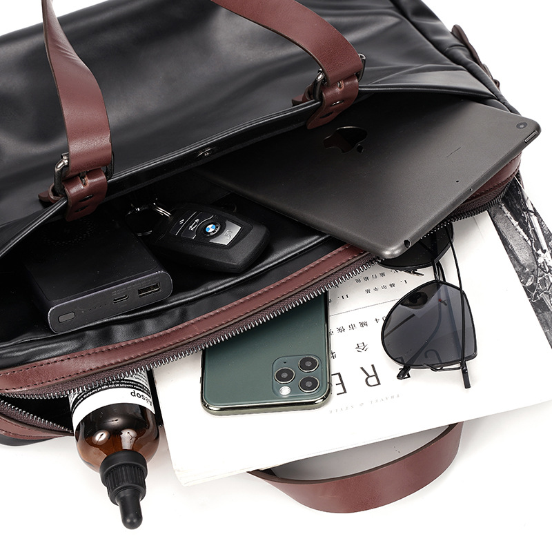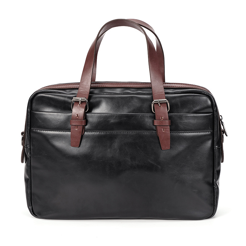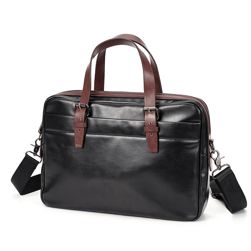 Hong Kong Business Men's Briefcase Cross Section Genuine Leather Handbag Black Business Computer Bag Single Shoulder Diagonal Satchel Bag