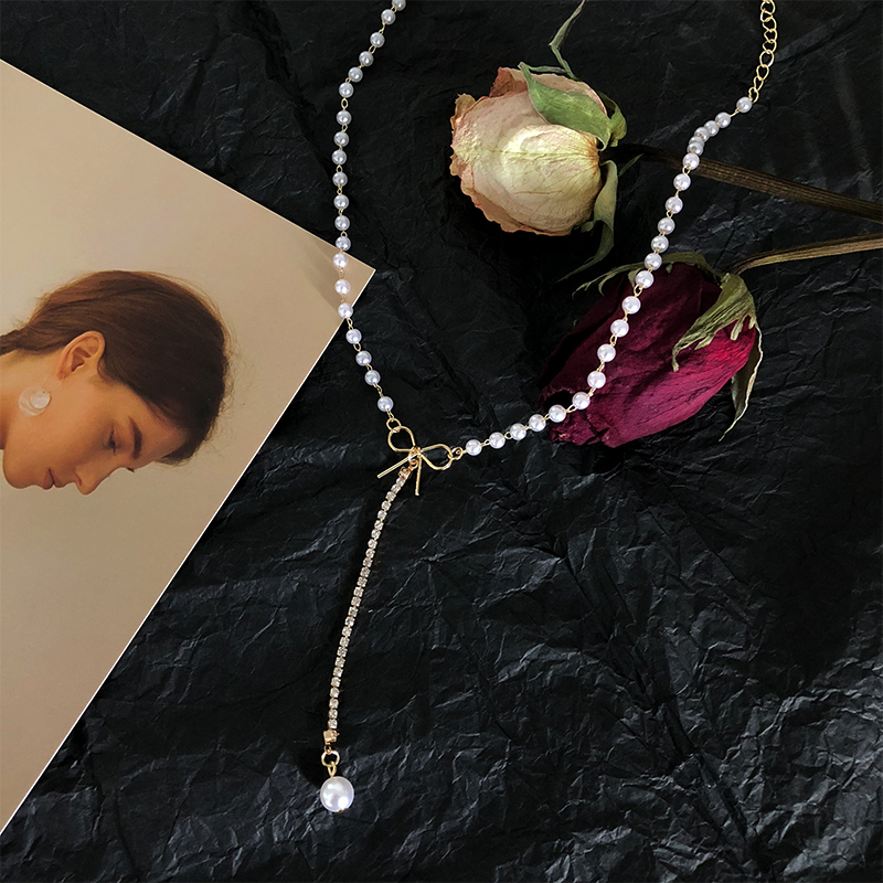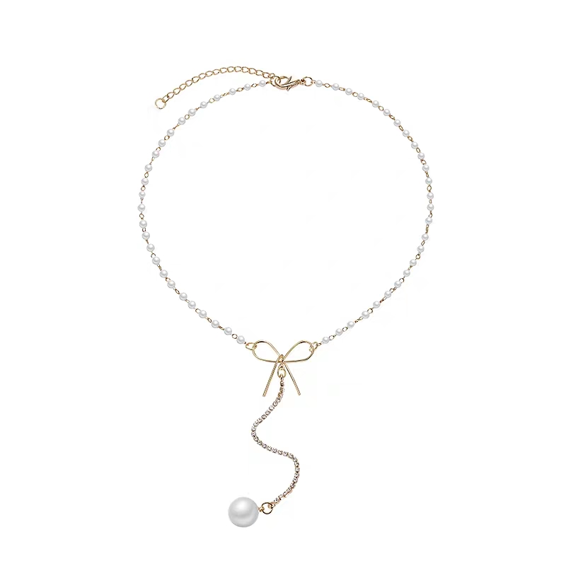 Bow Pearl Necklace (Clavicle Chain) Female Simple Temperament Pendant Student Sen Department Sweet Gentle Necklace Trend