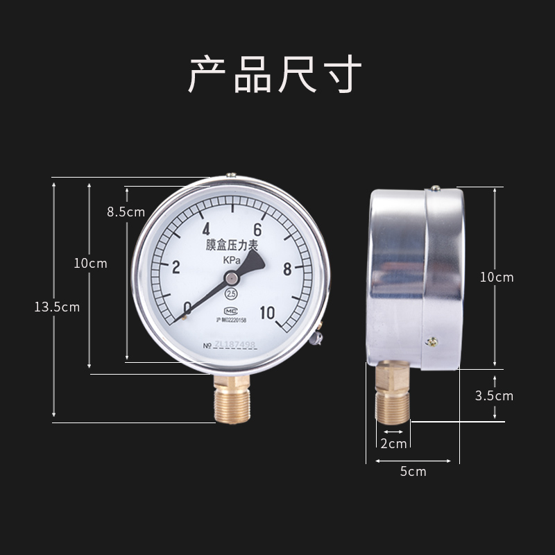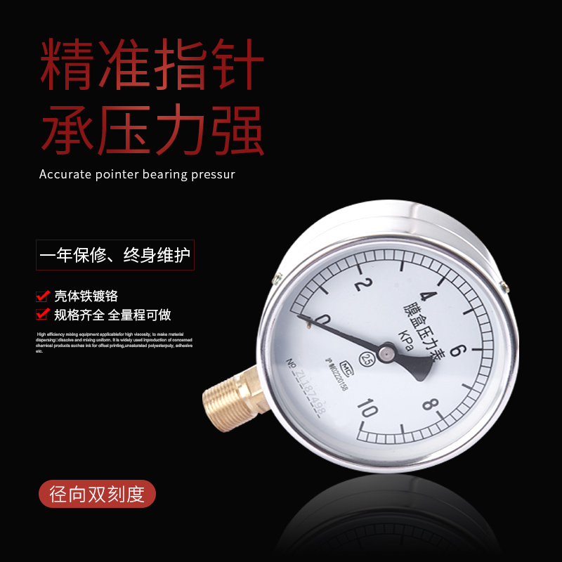 Pressure gauge YE100 membrane box pressure gauge kilopascal gas gauge micro pressure gauge 0-10 16 25KPA overpressure prevention type