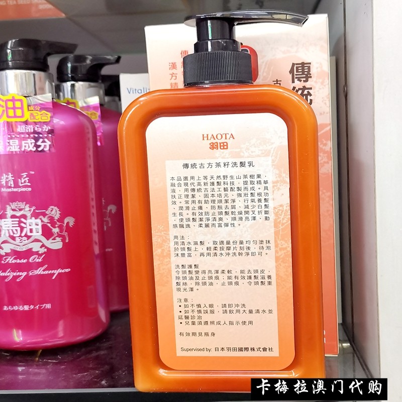 Macau Haneda Tea Seed Shampoo Milk 900ml Ancient Square Tea Seed Shampoo water anti-undation to improve hair quality