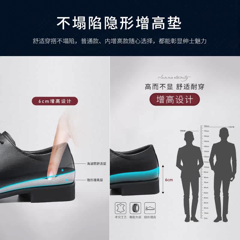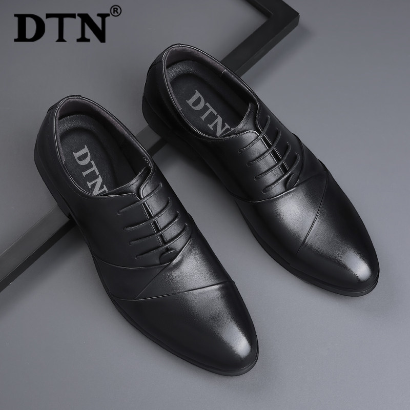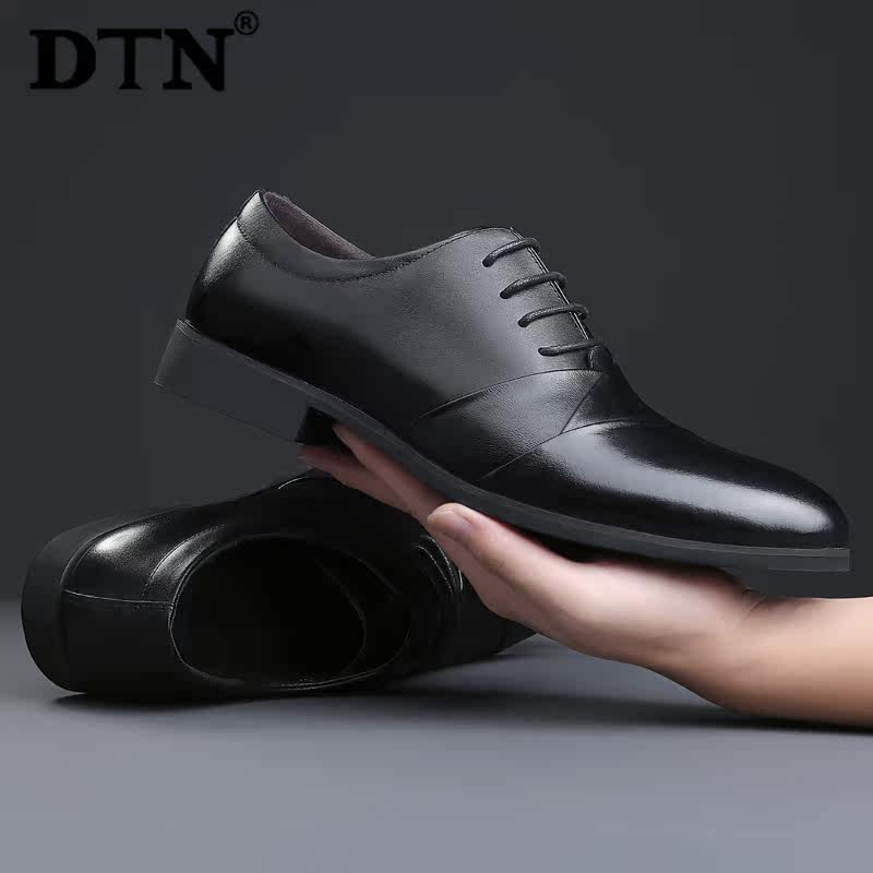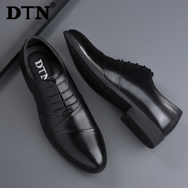 DTN men's leather shoes men's leather business casual inner heightened British trend work shoes black soft bottom clearance