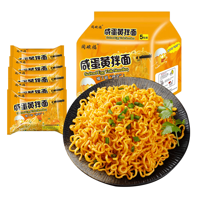 Tongwan Fuxian egg yolk mixed noodles 30 packs of whole boxes of instant noodles Overnight hunger Net red turkey noodles bagged instant noodles fast food