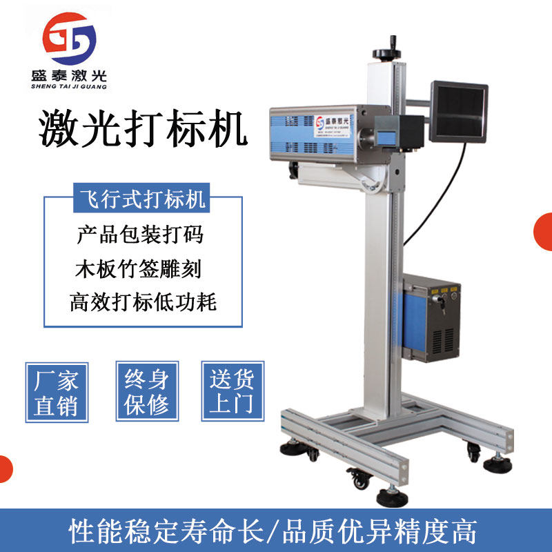Flying assembly line laser engraving machine food packaging bag date bottle cap water bucket Ejiao carbon dioxide engraving machine