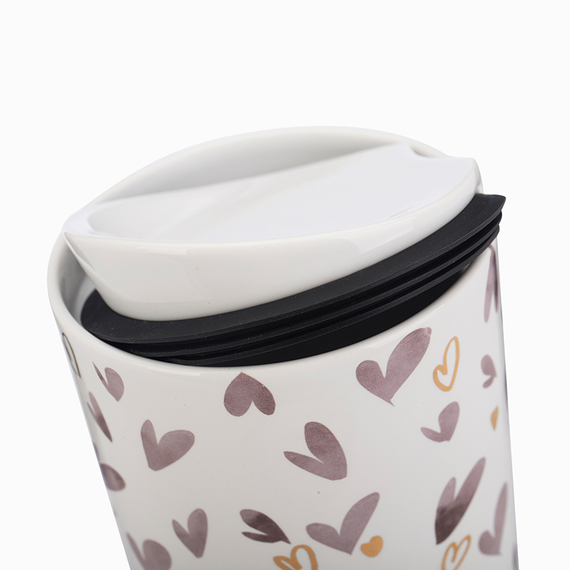 Love House Green Double-layer with hand cup ceramic cover heart printing Mark Cup American small fresh ceramic cup