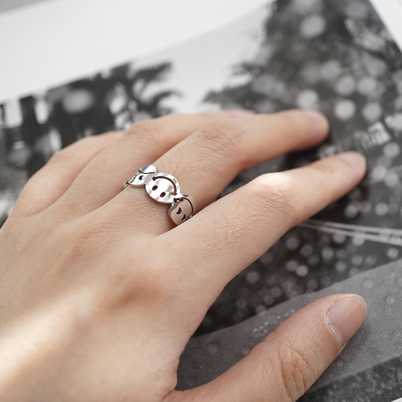 KANSAI homemade emoji smiley face mood and sorrow ring opening adjustable titanium steel ring male and female couples