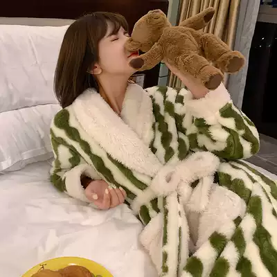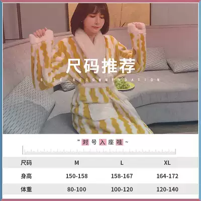 Japanese autumn and winter robes female thick velvet coral velvet pajamas female warm flannel extended bathrobe