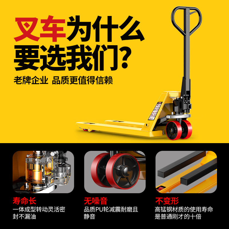 Forklift manual hydraulic small lengthened lifting hand push hand pull hydraulic ground cow factory direct 2 tons 3 tons truck
