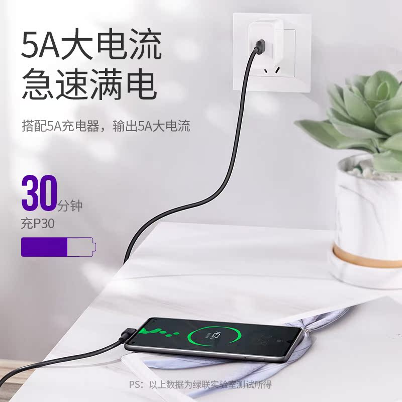 Green Union type-c data line elbow 5a Quick charge game typc-c Android charging line p30pro mat