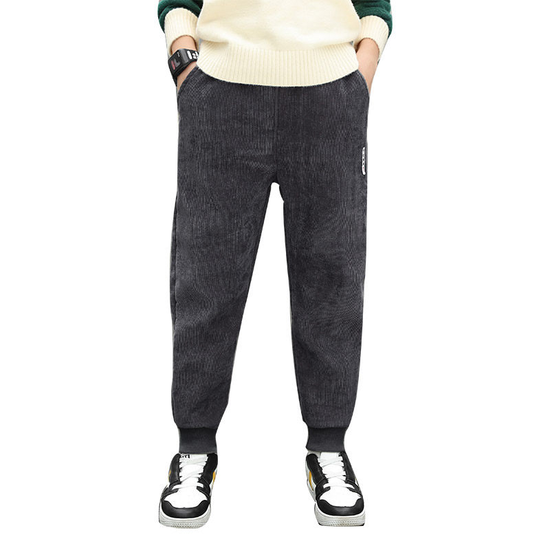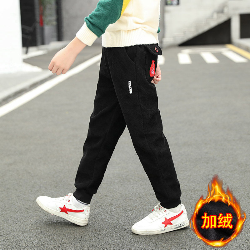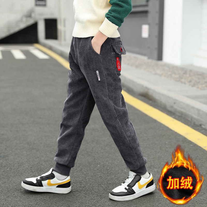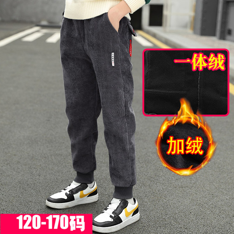 Boys' all-in-one velvet pants plus velvet autumn and winter outer wear 2022 new children's thickened winter casual trousers for big children