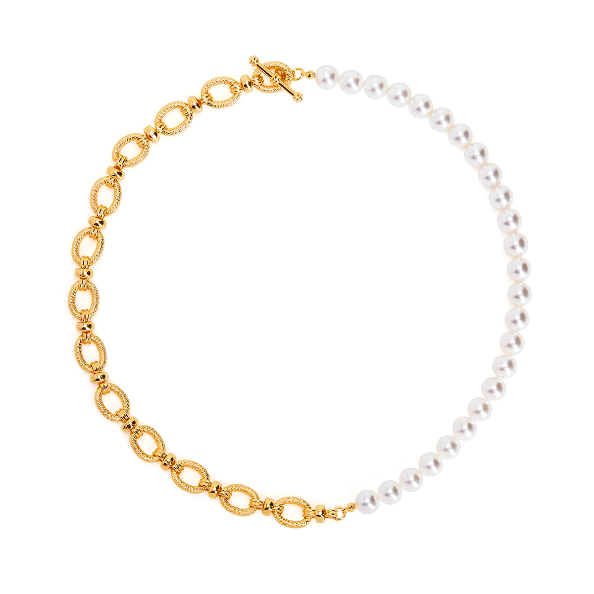 HeyJewel retro metal chain stitching pearl necklace niche design high-end temperament clavicle chain new