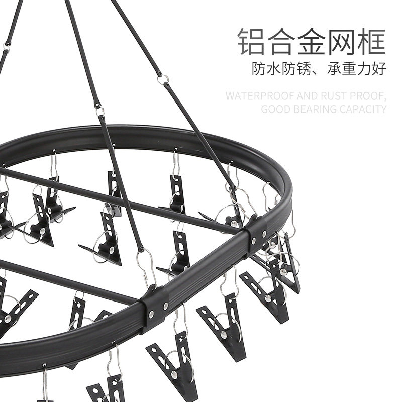 Aluminum alloy round sock drying rack household drying socks artifact multi-functional hanging underwear windproof multi-clip clothes drying rack