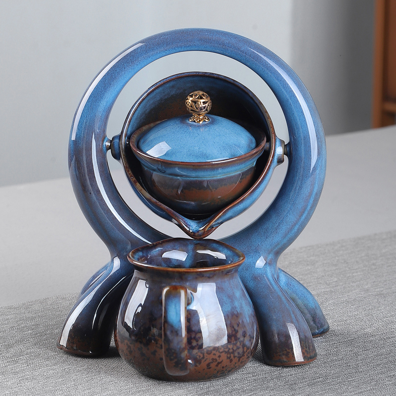 Xiaoyao tea maker Lazy automatic tea set High-end vintage ceramic Gongfu tea cup creative anti-scalding tea set