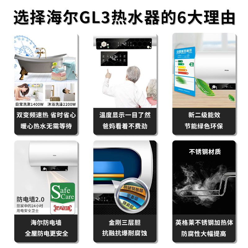 (Giant Whirlpool matching purchase) Haier electric water heater 50 liter 60 liter frequency conversion speed hot GL3 commander A3 shower set for purchase