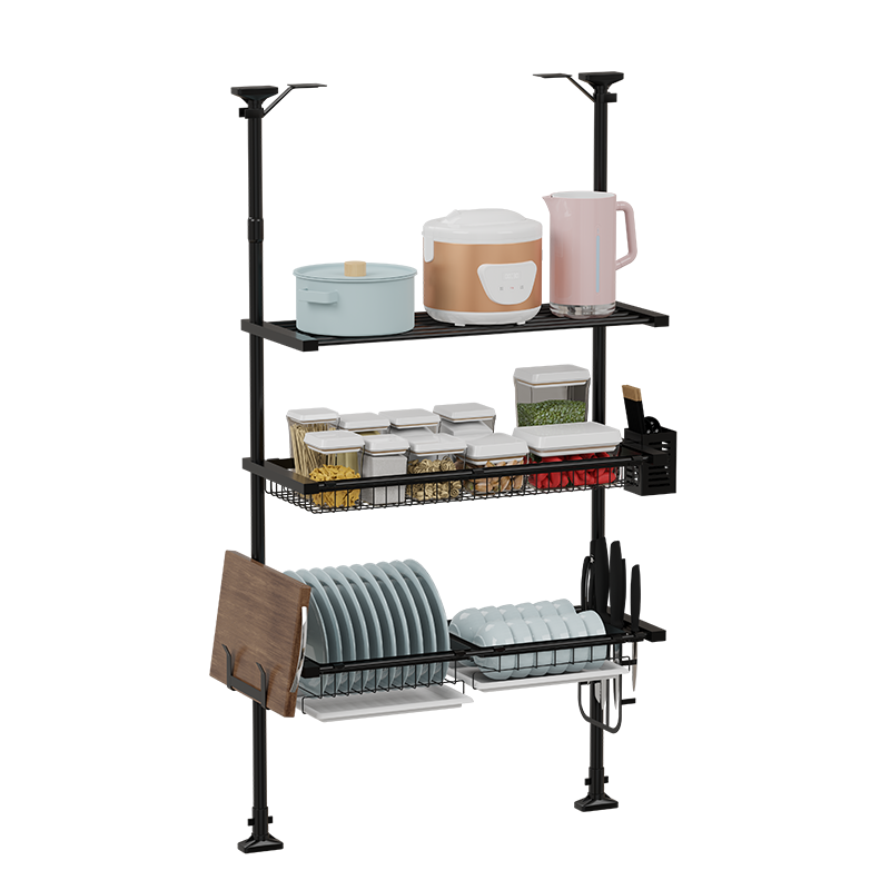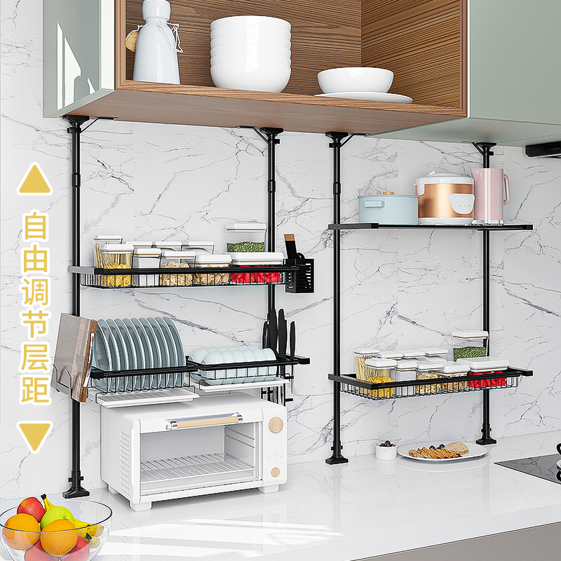 Stainless steel kitchen top of the sky shelf tank scaling bowl asphalt hanging window counter multi-functional reception layer