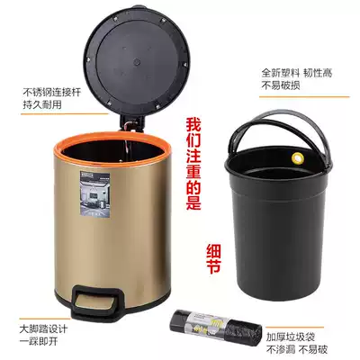 Stainless steel pedal trash can Square round commercial office bedroom powder room with lid type trash can