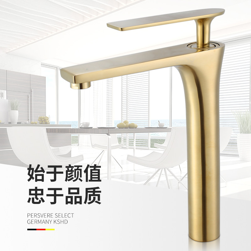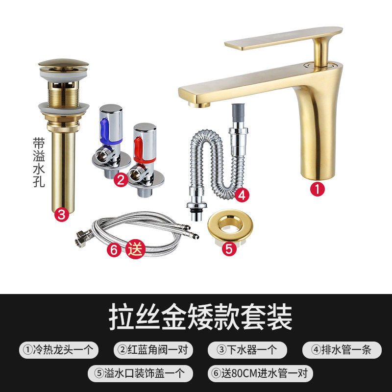 Home Full Copper Wire Drawing Gold Hot And Cold Taps Makeup room Pelvic Floor Basin Washbasin Nordic Golden Taps