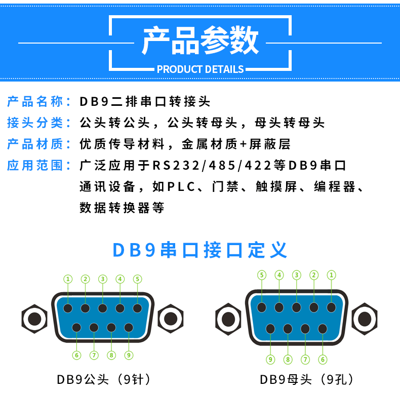 DB9 pin serial port adapter RS232 485 male to male to female COM port male to female