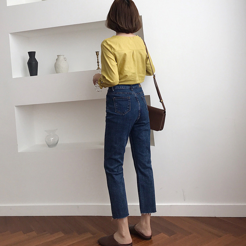 Fat sister big size high waist jeans children with slim fit 100 lap small legs coarse matching with high straight cylinder 90% pants