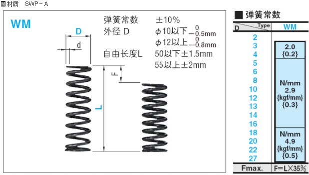 Mithrice round wire spiral spring WM13 16 20mm violin steel wire SWP-A instead of Mithmi MISUMI